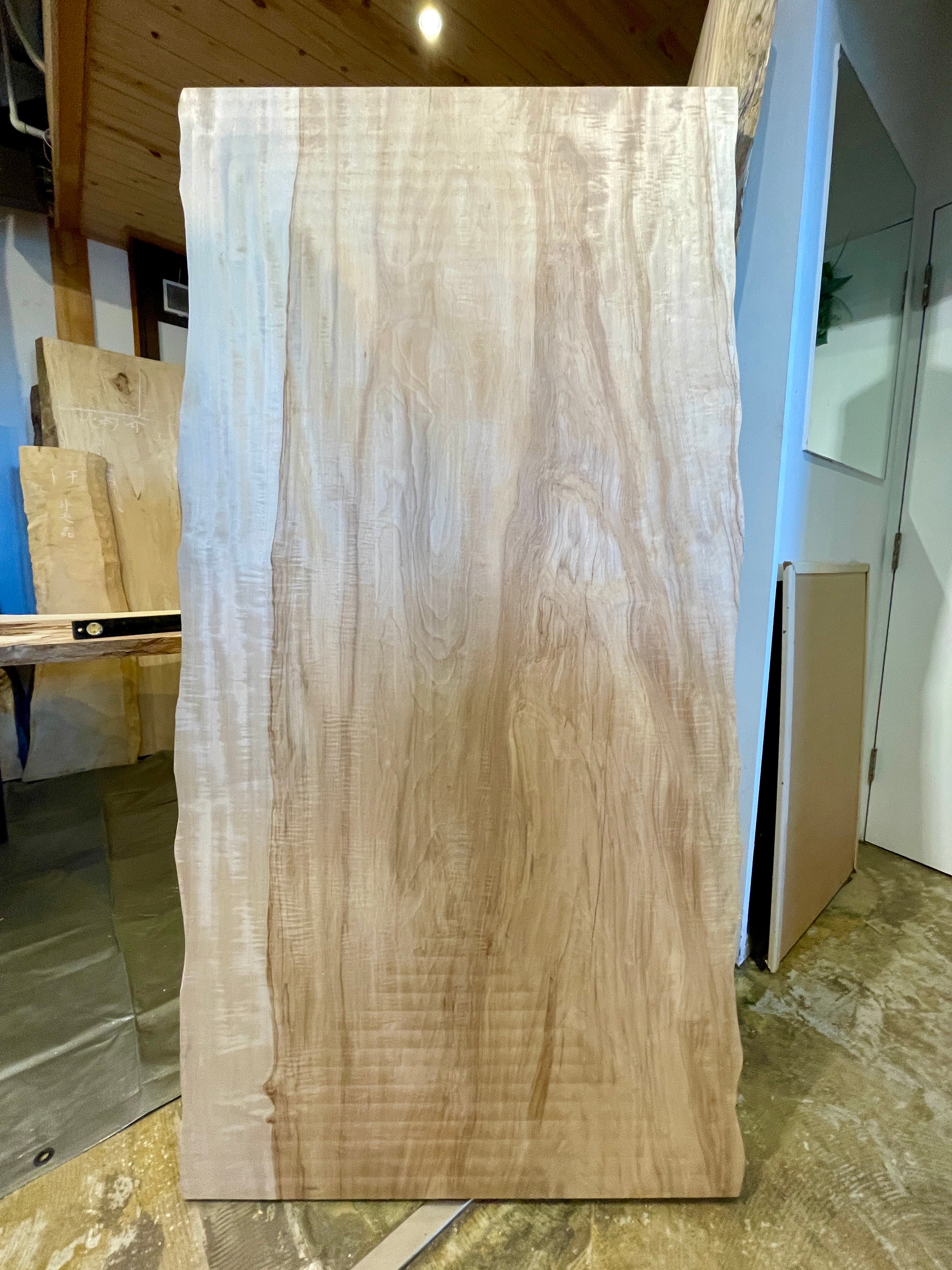 そんな栃の一枚板ダイニングテーブルをアトリエ一本道の店主が一枚一枚、拘りも持って、天板の個性と向き合いながら仕上げます。
