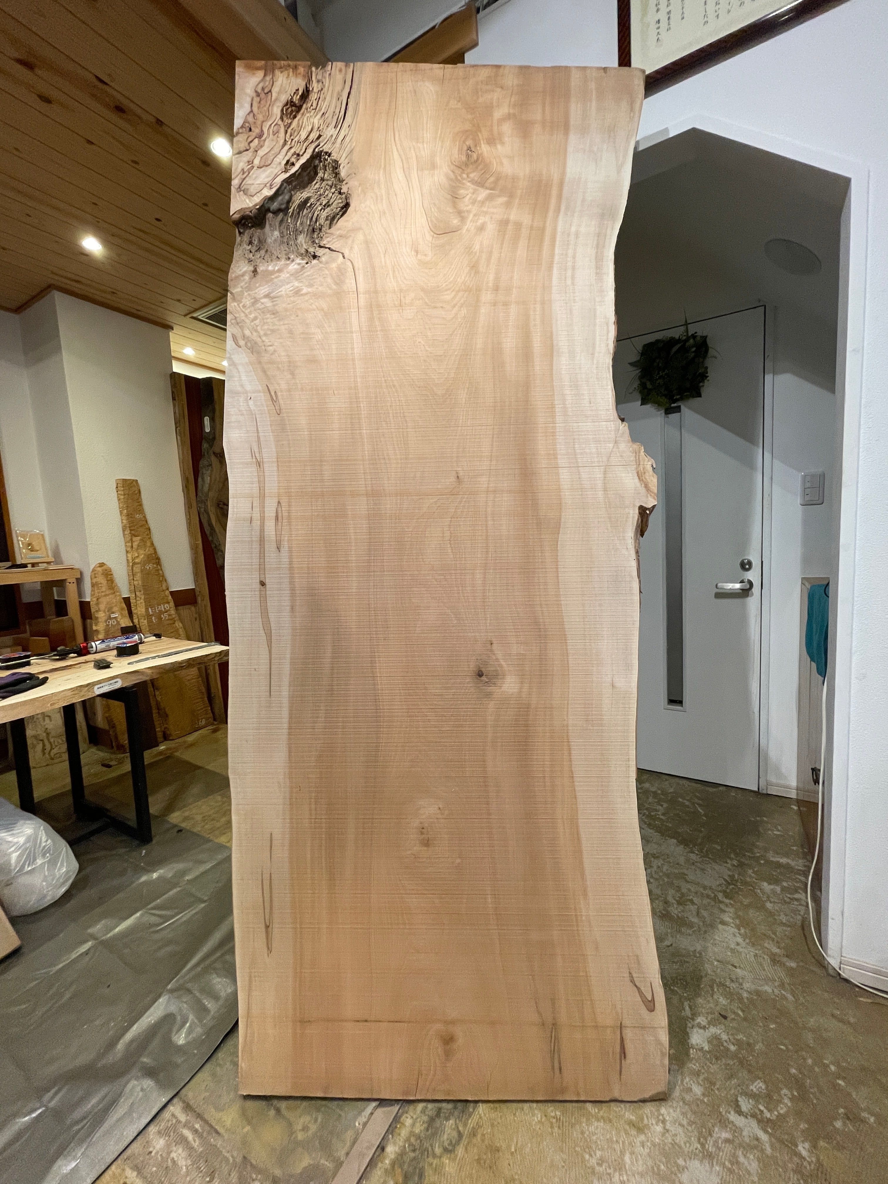 そんな栃の一枚板ダイニングテーブルをアトリエ一本道の店主が一枚一枚、拘りも持って、天板の個性と向き合いながら仕上げます。