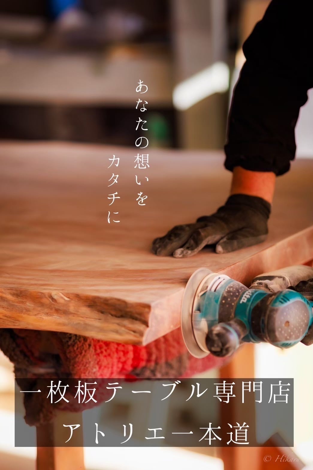 後に家具屋として一枚板テーブルの製作を始めた。