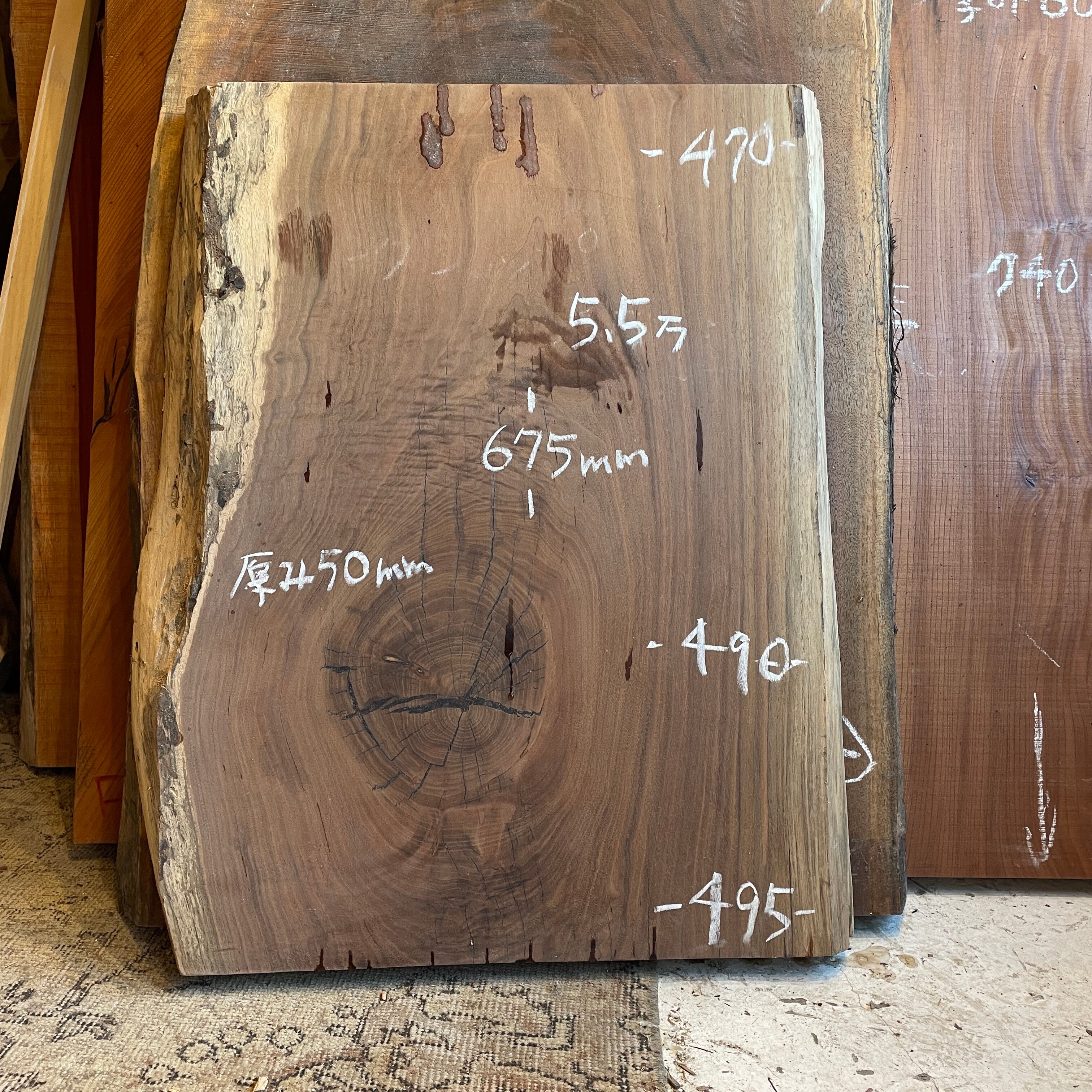 一枚板 ウォールナット 670×470-490-495×50mm